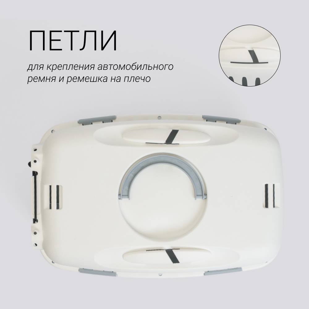 - Есть петли для крепления автомобильного ремня и ремешка на плечо.