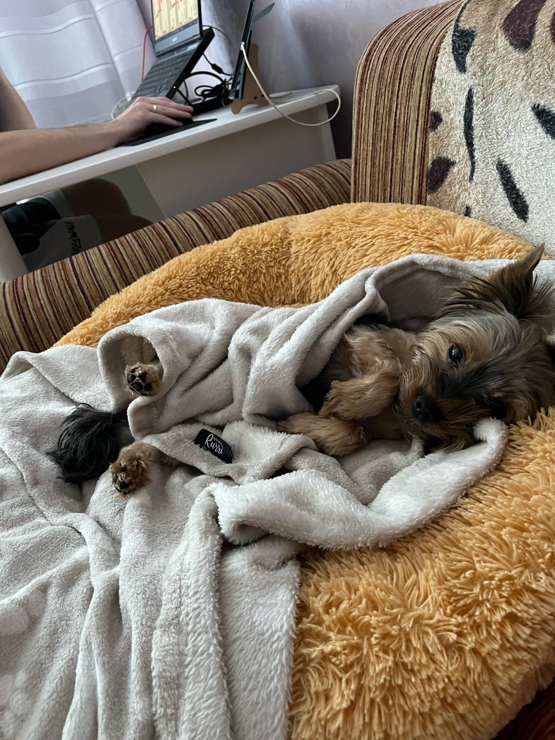 Собака не расстаётся с этим пледиком.Комментарий