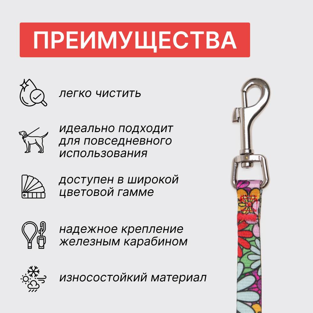 Поводок из коллекции Flower Power от бренда RURRI – отличный вариант для ежедневных прогулок в теплое время года.
