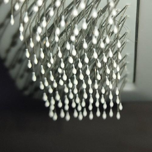 - Специальные металлические зубчики с каплей на кончиках помогают уменьшить чрезмерную нагрузку при расчесывании.