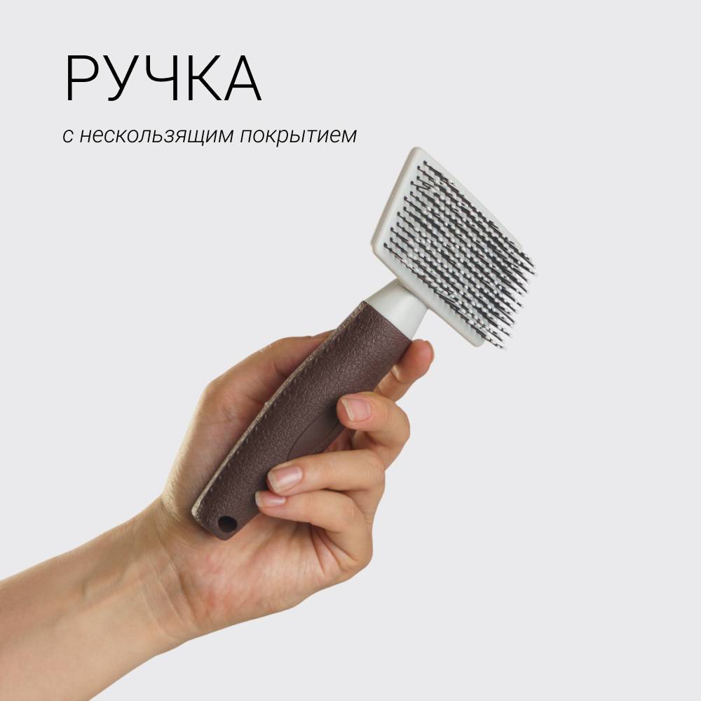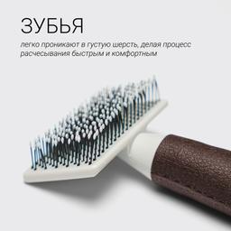 - Зубцы расчески легко проникают в густую шерсть, делая процесс расчесывания быстрым и комфортным.