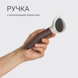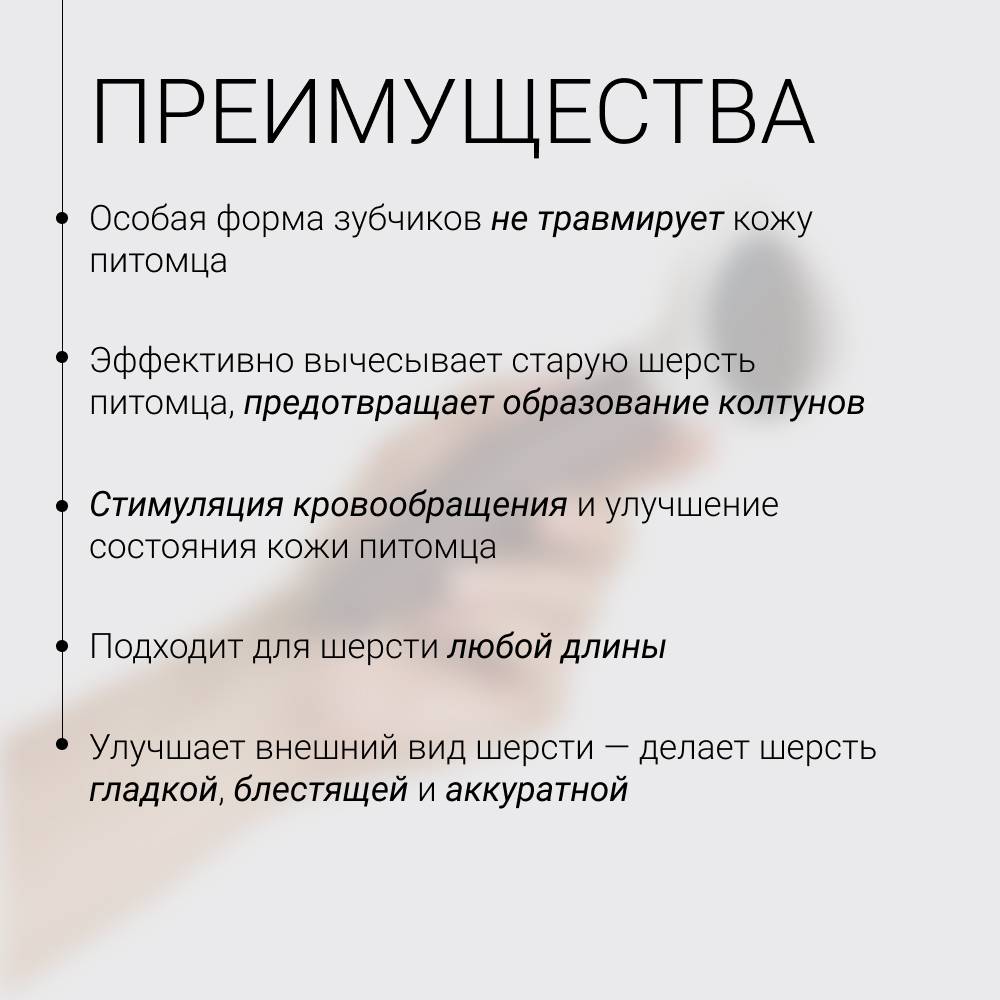 - Эффективно вычесывает старую шерсть питомца, предотвращает образование колтунов.