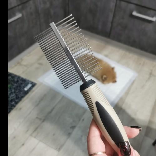 Замечательная расческа, отлично справляется с шерстью кавалер кинг чарльз спаниеля. Малышка быстро к ней привыкла, нет никаких проблем с вычесыванием. Не царапает кожу. Удобно держать в руке при вычесывании.Комментарий