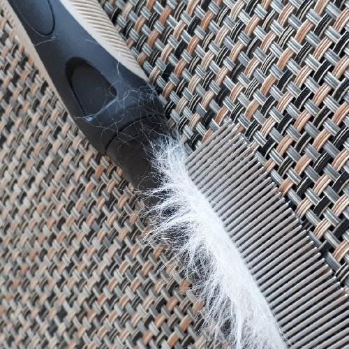 Расчёска с частыми зубьями RURRI тщательно прочёсывает шерсть, избавляя от мельчайших спутываний, прекрасно удаляет старые волоски и грязь, способствуя оздоровлению и росту новой шерсти.