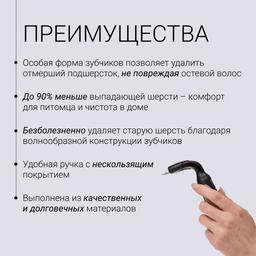 - Безболезненно удаляет старую шерсть благодаря волнообразной конструкции зубчиков.