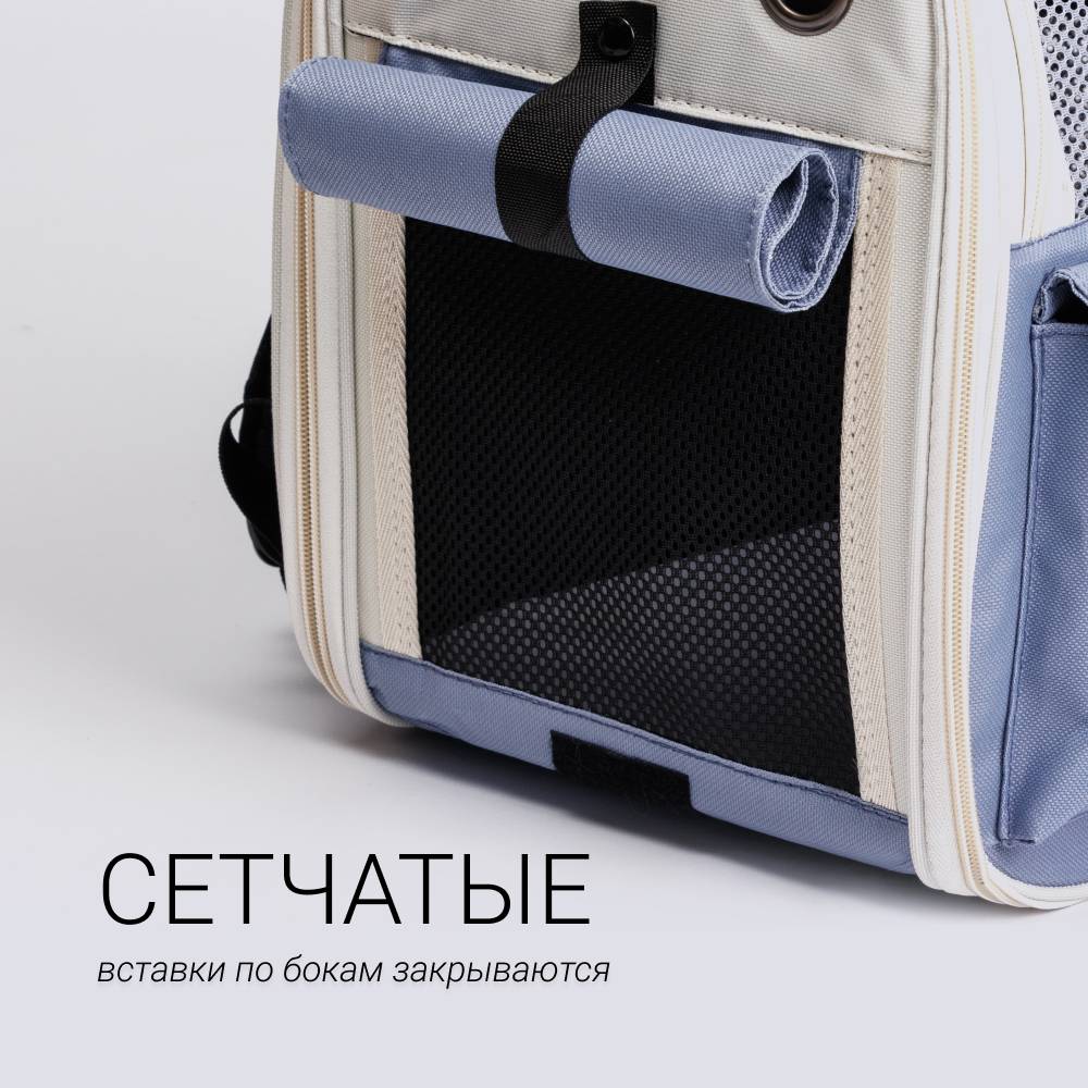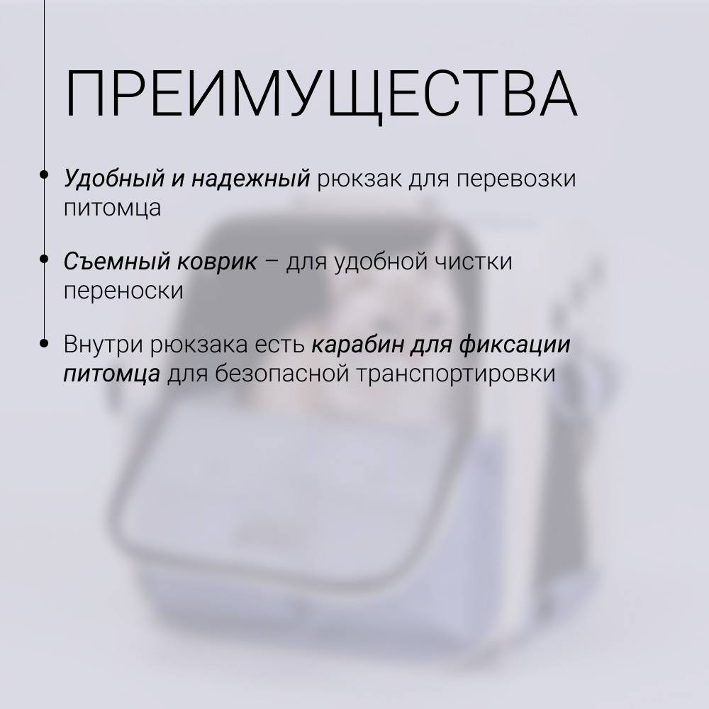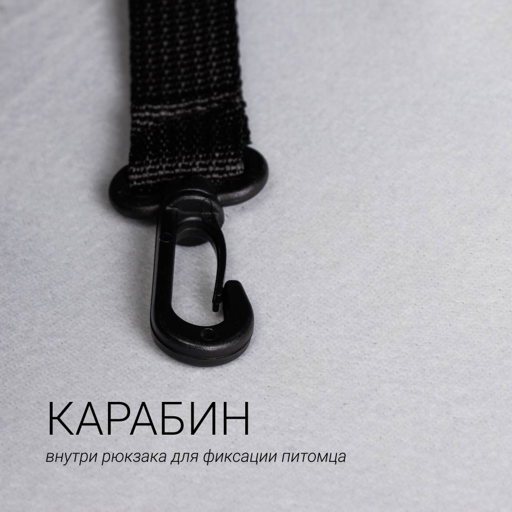 - Внутри рюкзака есть крепление с карабином для фиксации питомца для безопасной транспортировки.