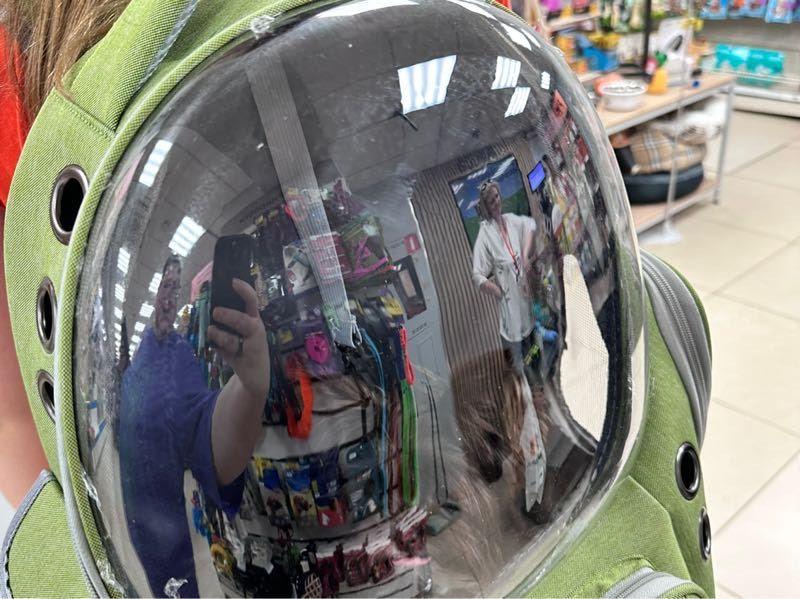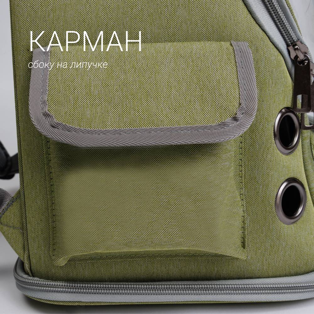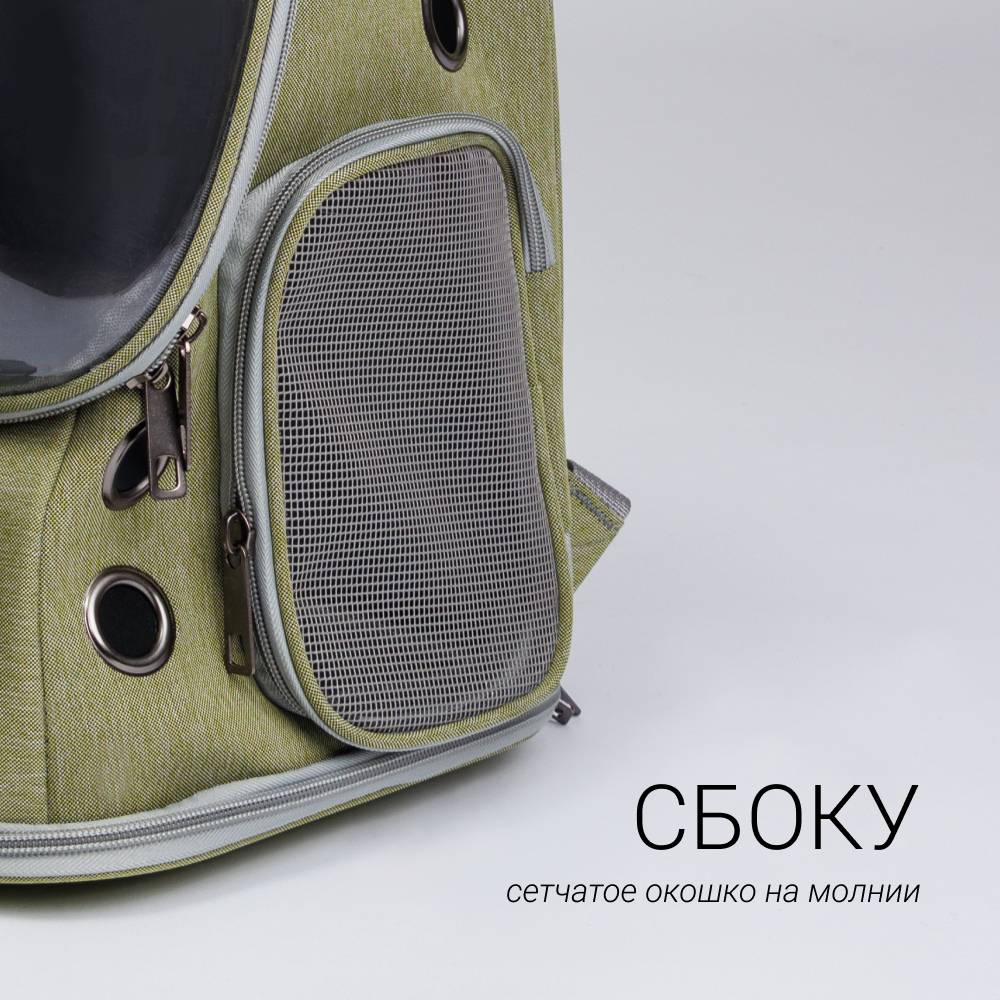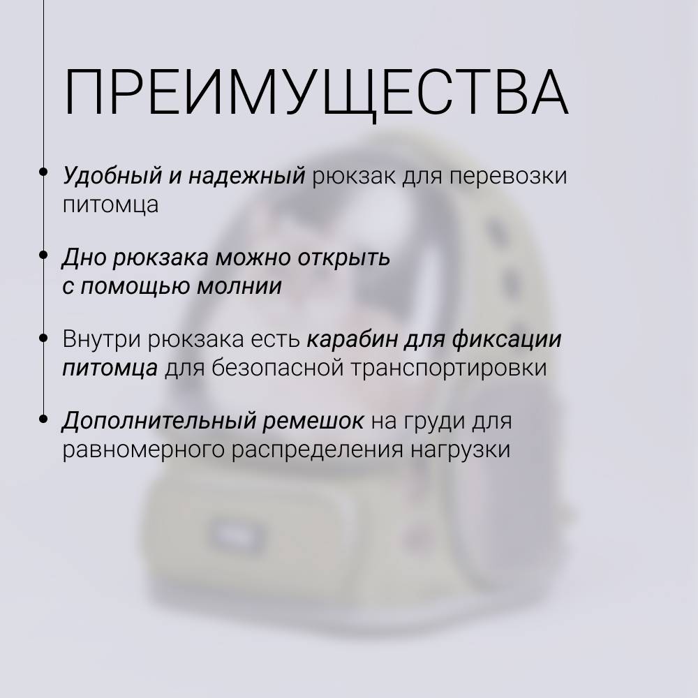 - Внутри рюкзака есть крепление с карабином для фиксации питомца для безопасной транспортировки.