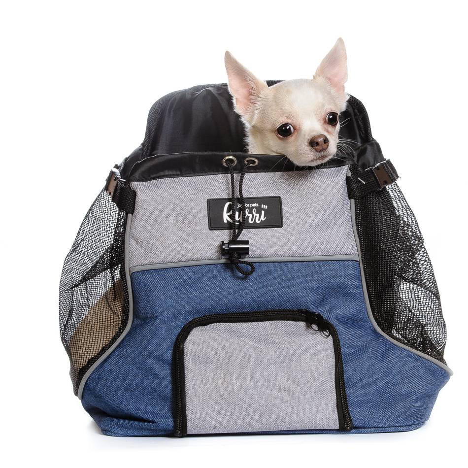 Rurri Рюкзак переноска для кошек и собак серо-синий 29х23х38 см - это удобный и надежный аксессуар для транспортировки небольших животных.