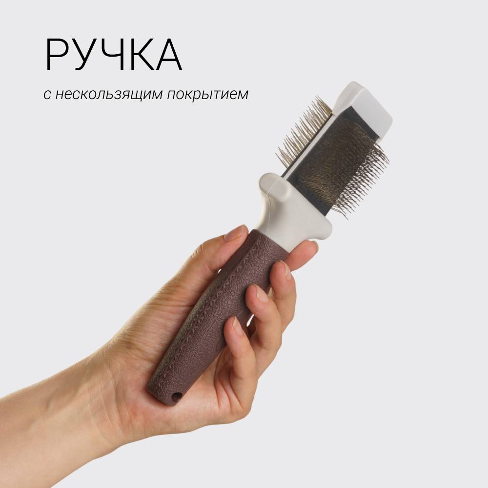 Двухсторонняя щетка-пуходерка от бренда RURRI — это профессиональный инструмент для ухода за шерстью домашних животных, предназначенный для эффективного удаления отмерших волос и колтунов.