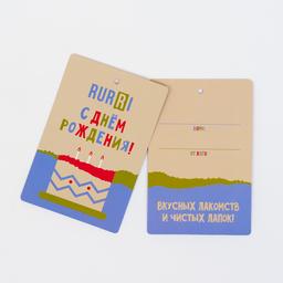 • Этикетка в форме открытки с пожеланием «вкусных лакомств и чистых лапок», можно подписать «кому – от кого».