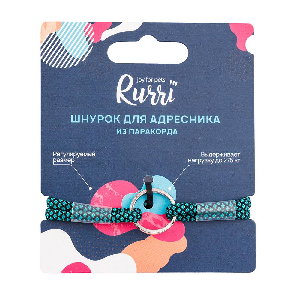 Шнурок для адресника от Rurri изготовлен из качественного прочного паракорда и подходит для большинства пород кошек и собак мелких пород.
