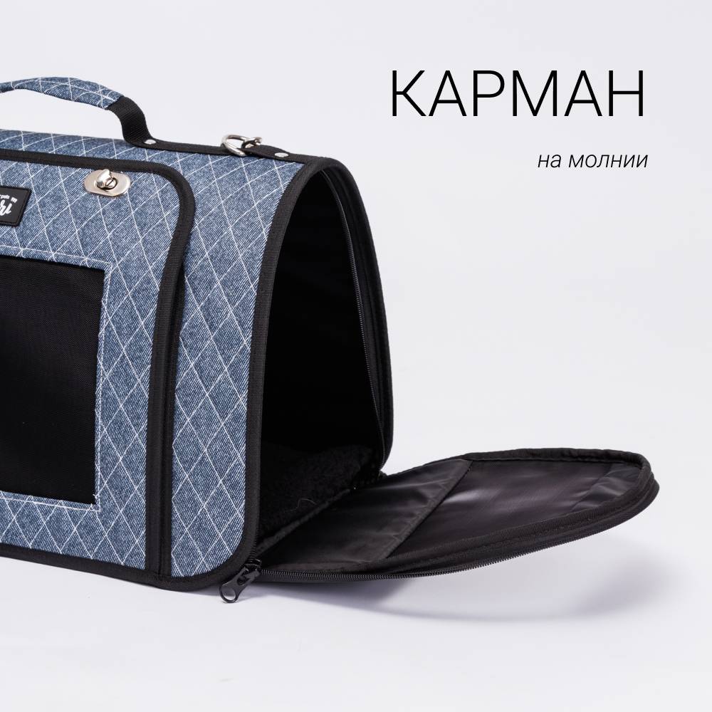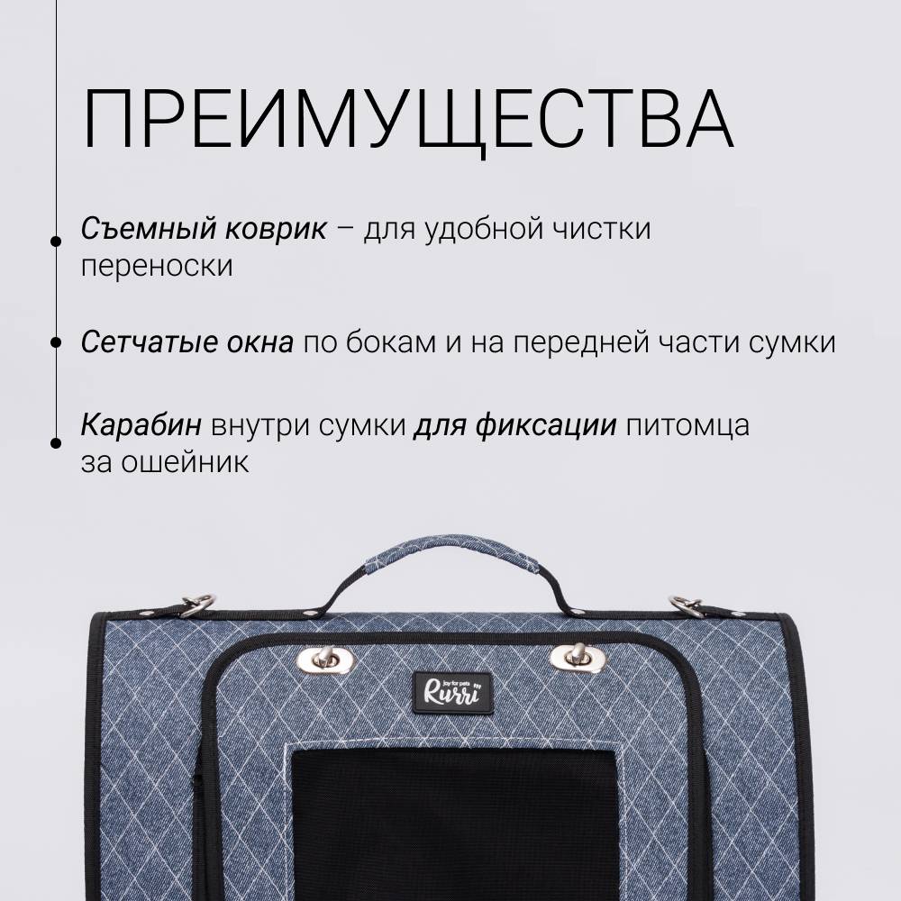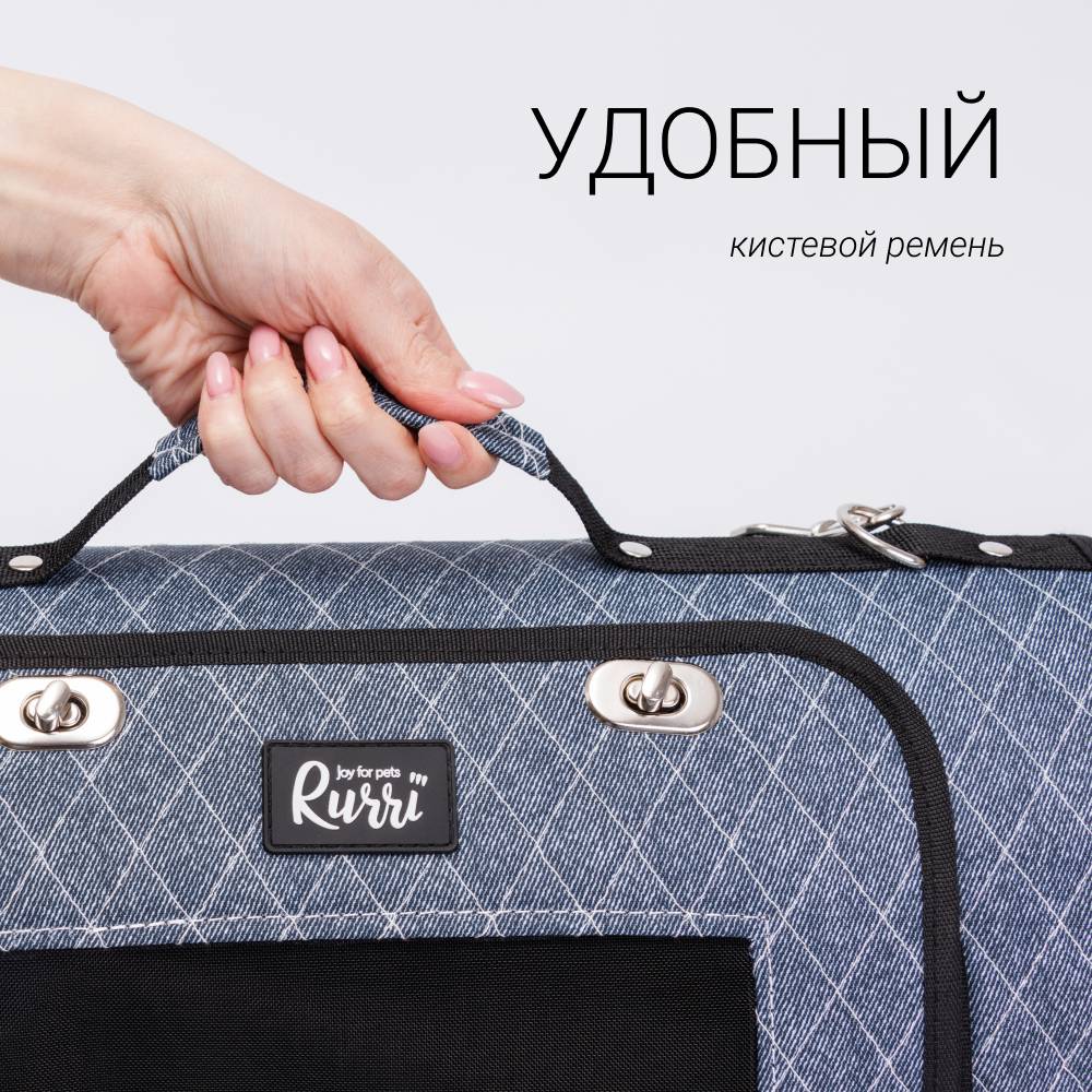 Сумка-переноска синего цвета RURRI – это удобный и надёжный аксессуар для перевозки небольших животных.