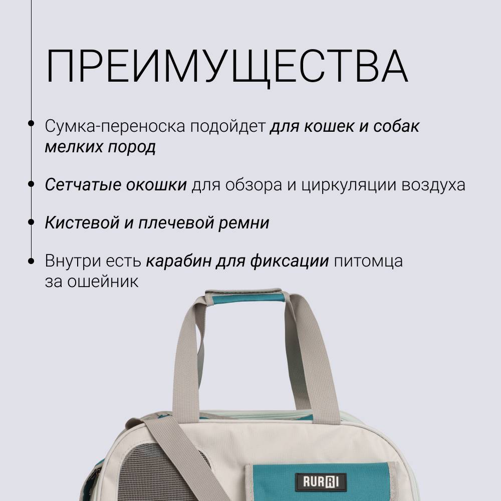 Сумка-переноска от бренда Rurri подойдет для перевозки кошек и собак мелких пород.