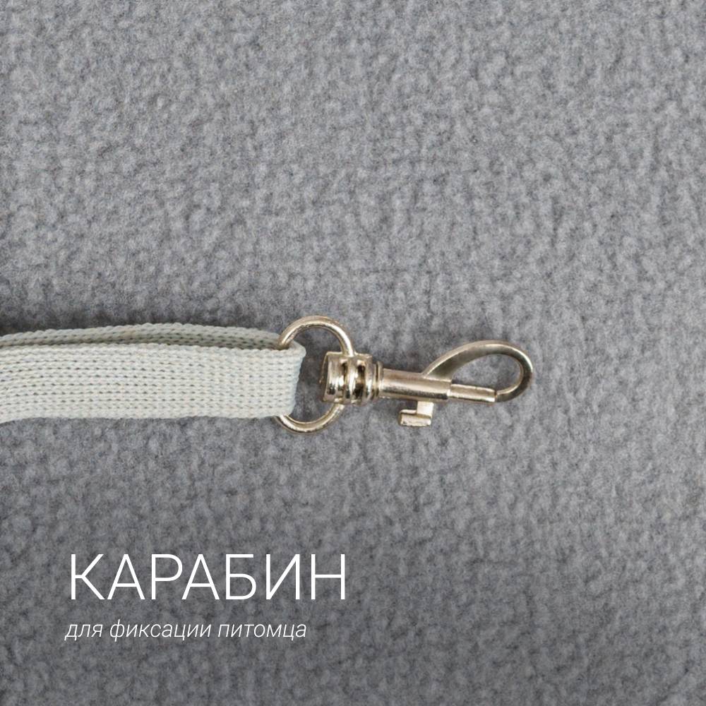 - Внутри есть карабин для фиксации питомца за ошейник.