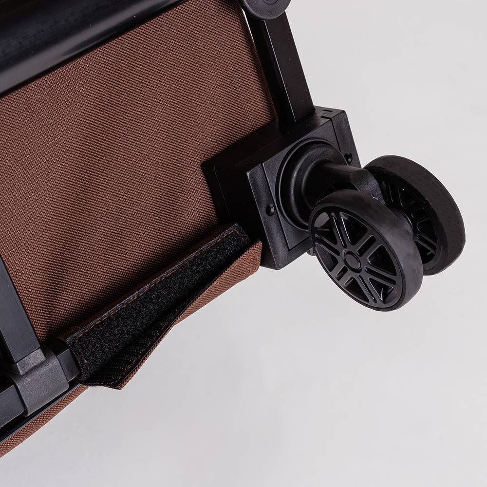 - Сумка крепится к подставке с колесами с помощью липучек.
