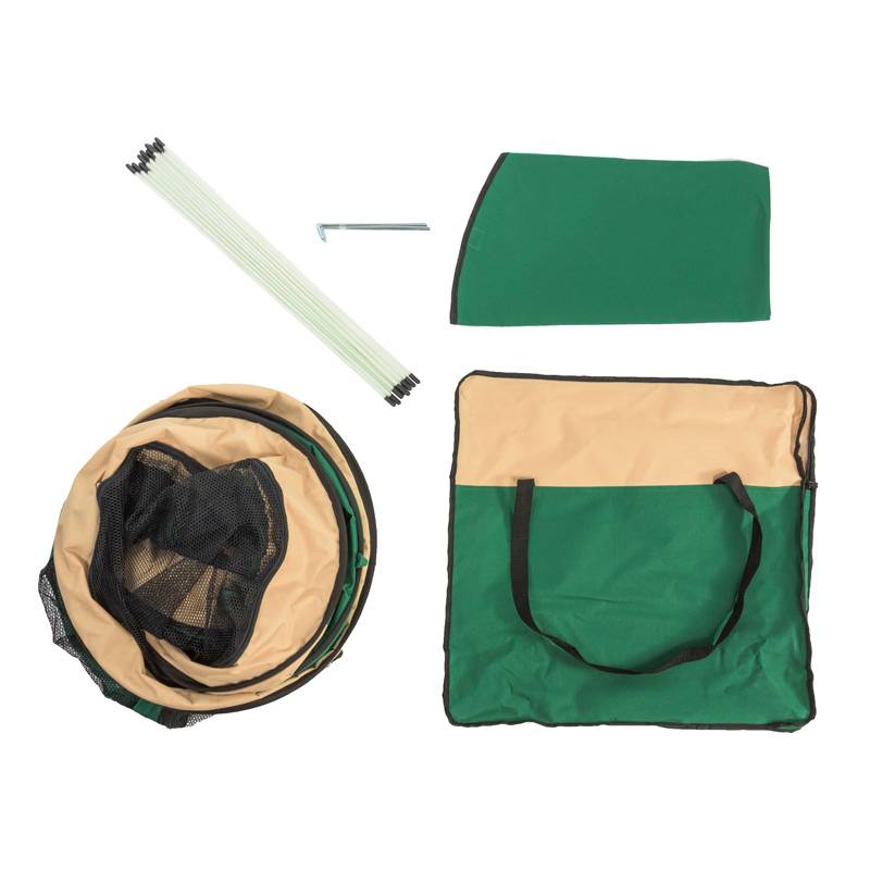 - Имеет съемную крышу из сетки и отстегивающееся дно.