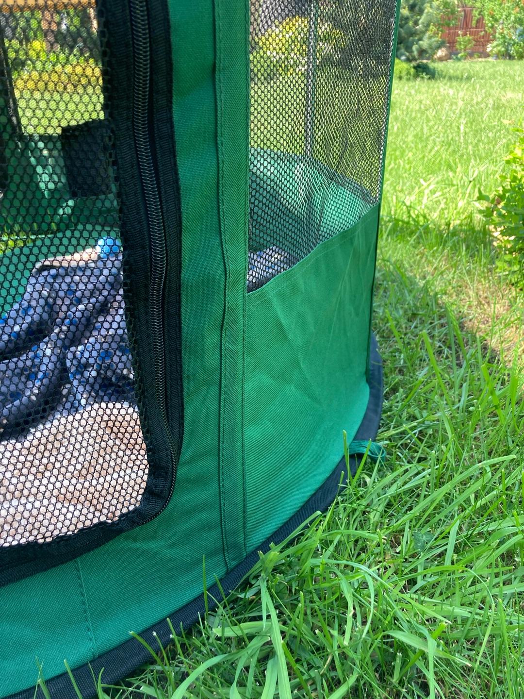 - Отличный вольер для собаки, из плотной водонепроницаемой современной ткани полиэстера.