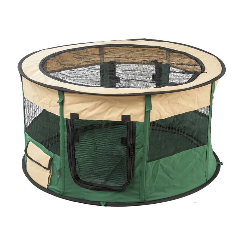 - Вольер-тент для собак, изготовленный из прочного водонепроницаемого материала, незаменим в путешествии, дома или на улице.