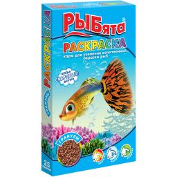 Корм «РЫБята РАСКРАСКА» для большего богатства красок. В этом корме есть все необходимое для правильного питания и развития рыбок, в том числе витамины, микро- и макроэлементы. Кроме того, он содержит натуральные компоненты, способствующие проявлению яркой сверкающей окраски рыбок.