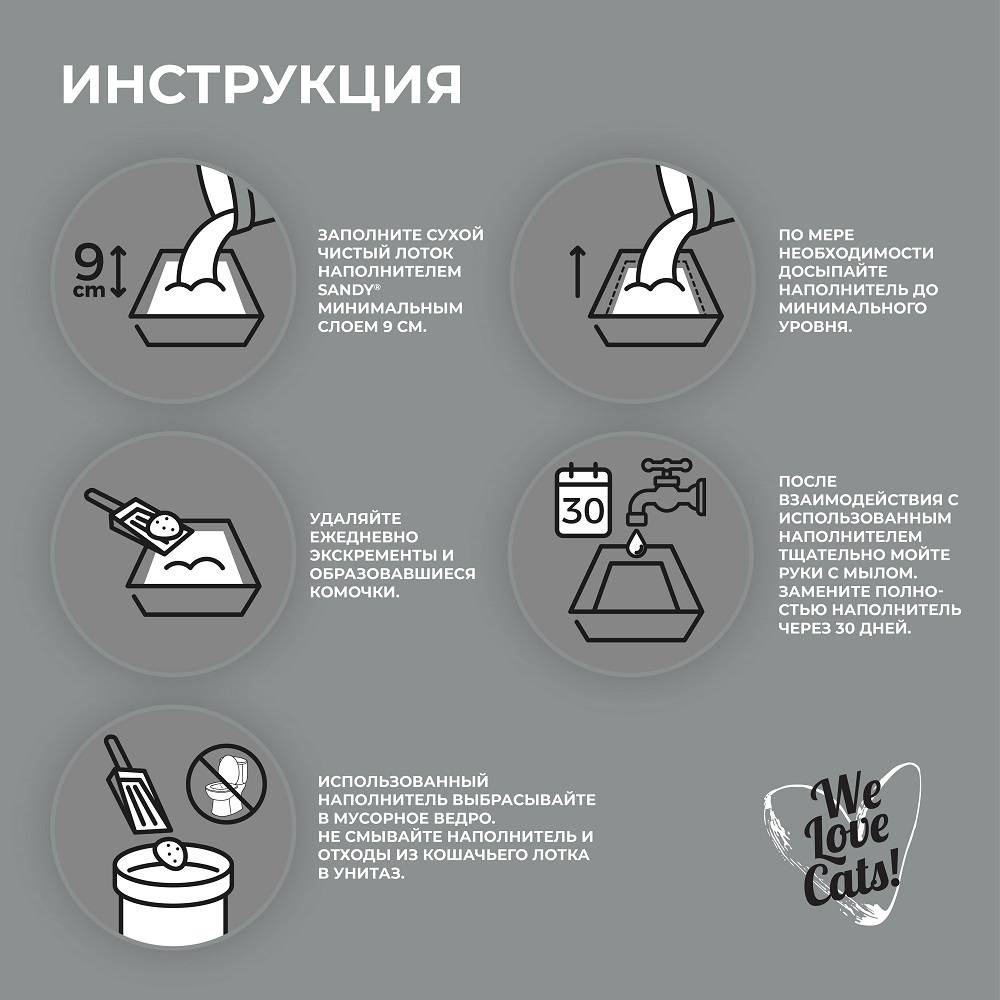 - После взаимодействия с использованным наполнителем тщательно мойте руки с мылом.