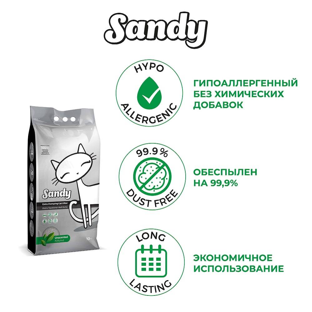 Sandy® Unscented гипоаллергенен, не содержит химических добавок. Не имеет ароматизаторов в составе и естественным образом поглощает неприятные запахи и блокирует пары аммиака.