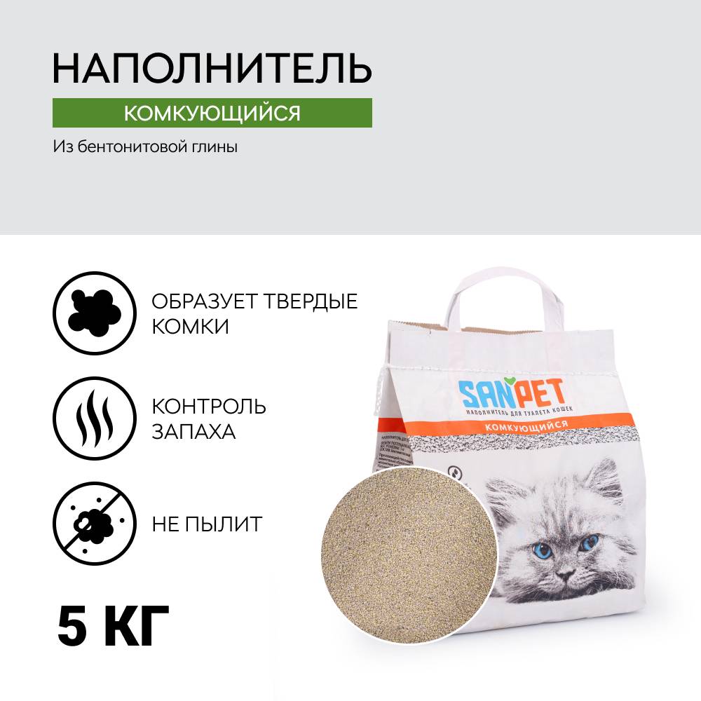 Наполнитель San Pet комкующийся, изготовлен из бентонитовой глины. Когда на нее попадает жидкость, то сразу образуются твердые комки, которые поглощают запах и влагу. При этом, наполнитель не пылит. Бентонитовая глина – это натуральный материал, безопасный для кошек и удобный в быту. Наполнитель отлично выявляет область, в которую кот сходил в туалет, для того, чтобы вам было удобно сразу же убрать за ним.