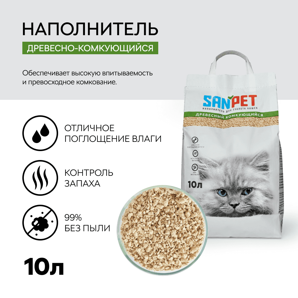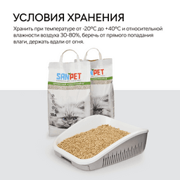 Наполнитель SanPet для кошачьего лотка изготовлен из экологически чистой древесины. Обеспечивает высокую впитываемость и превосходное комкование.