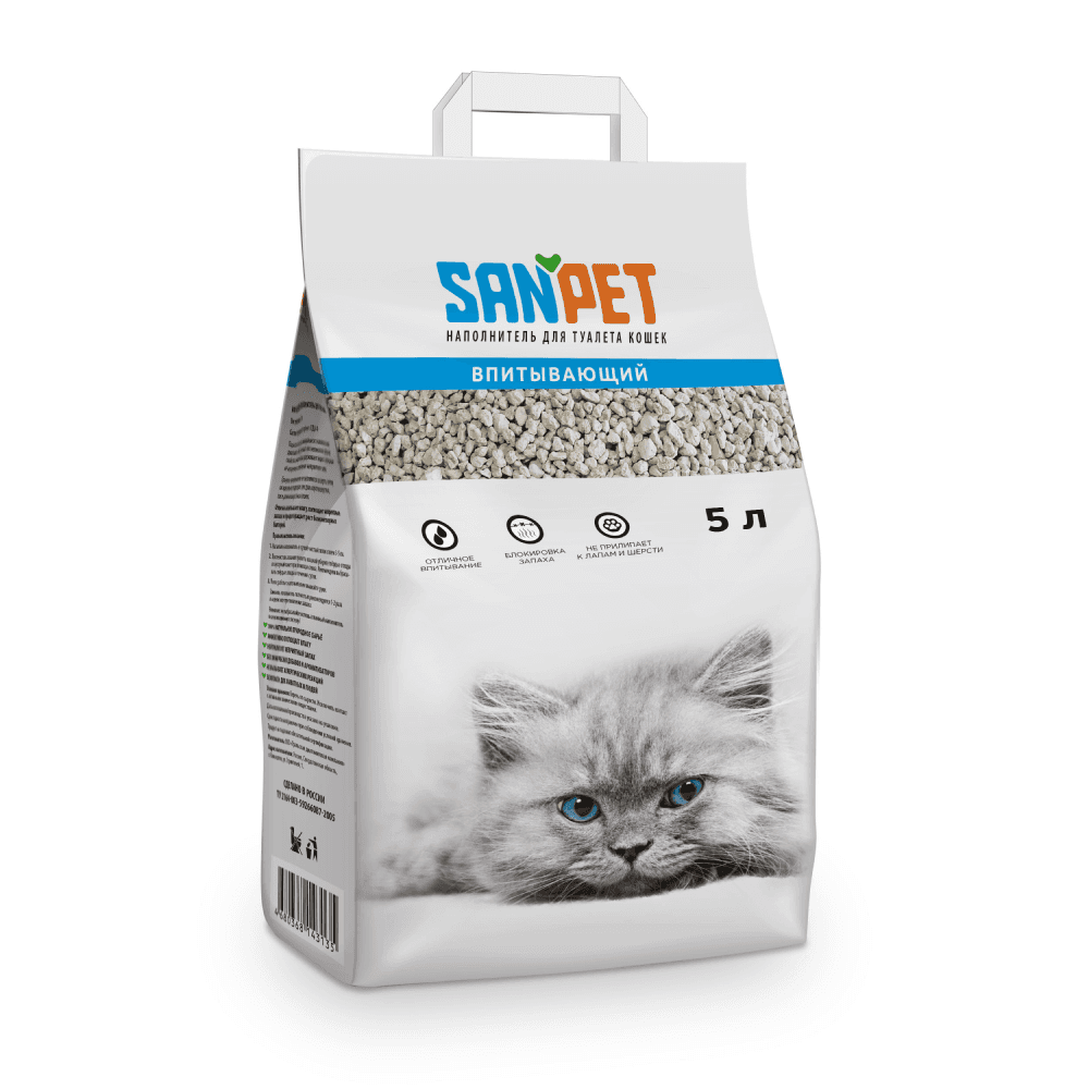 Впитывающий наполнитель SanPet на основе природного минерала диатомита обеспечивает отличные сорбирующие свойства: удерживает жидкость и предотвращает появление неприятного запаха.