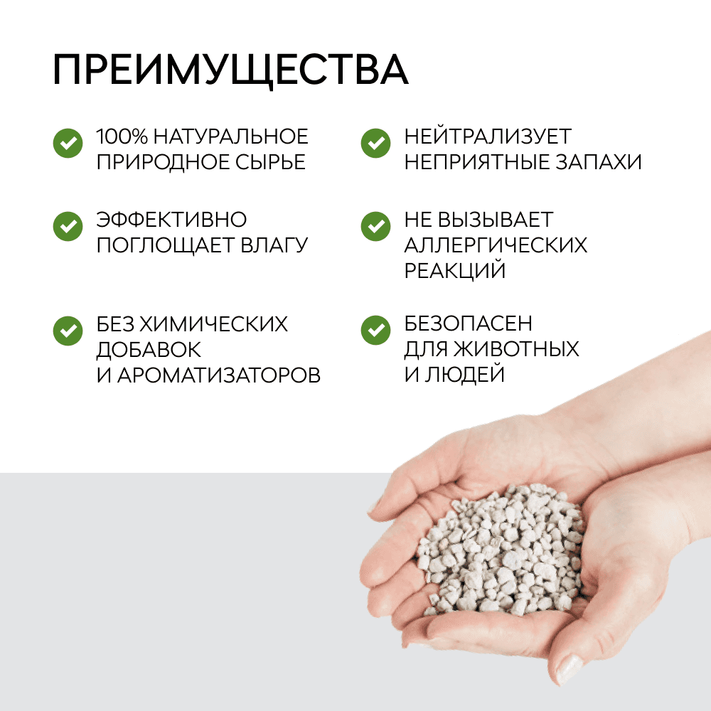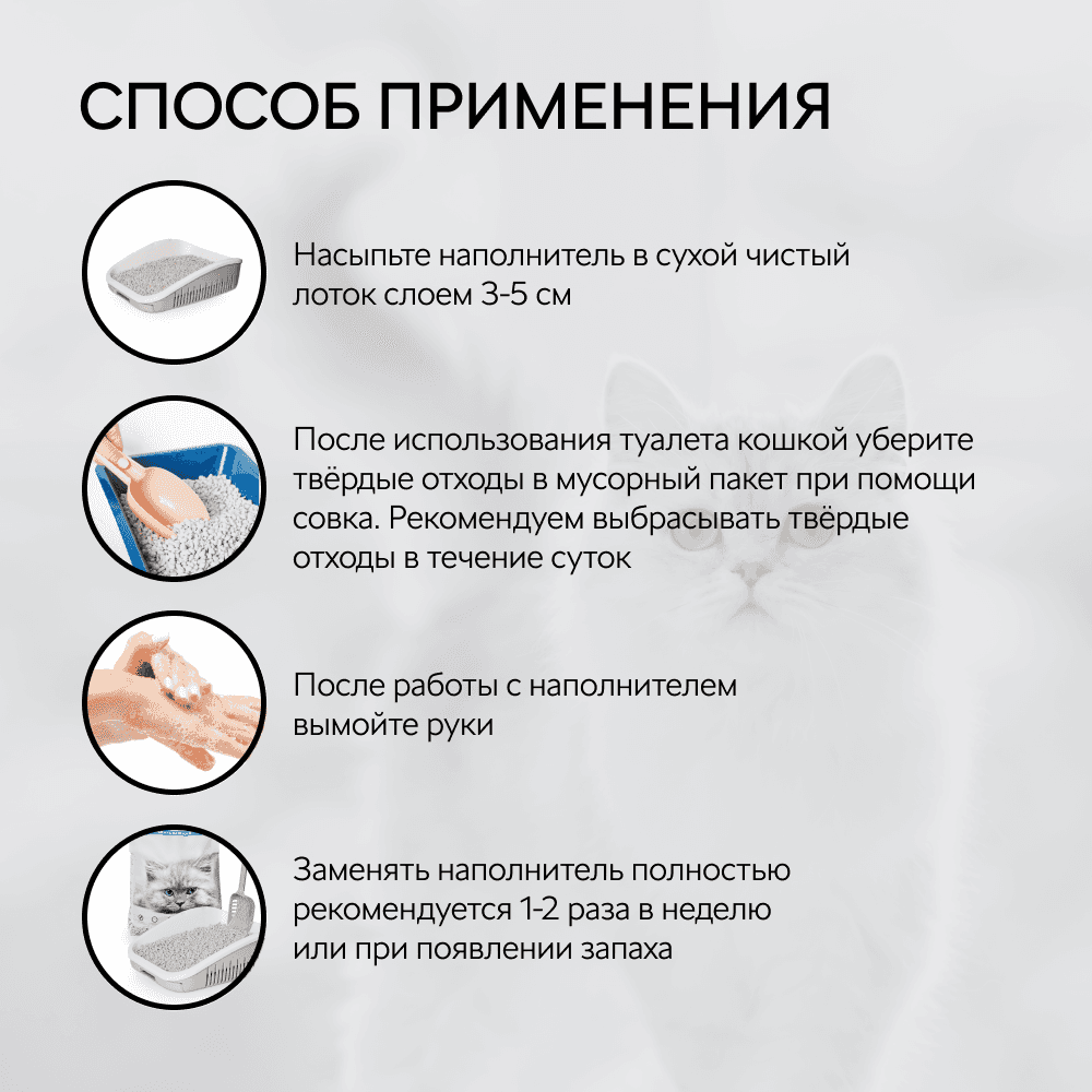 - Гранулы не цепляются за шерсть, поэтому наполнитель идеально подходит как для короткошерстных, так и для длинношерстных кошек 100% натуральное природное сырьё безопасно для животного и человека.