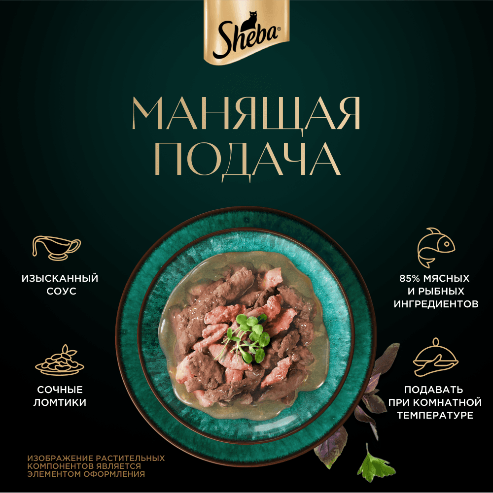 Мы приготовили его по особому рецепту, чтобы раскрыть всю красоту вкуса и сохранить баланс витаминов, минералов, ОМЕГА-6 жирных кислот и аминокислот, необходимых вашей любимице. Подарите своей кошке особое удовольствие, побаловав ее всеми блюдами из коллекции SHEBA®.
