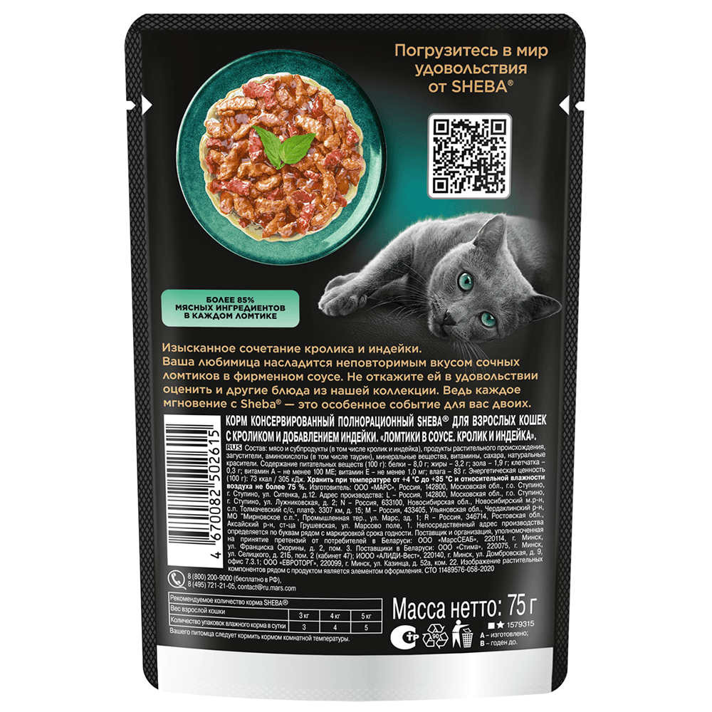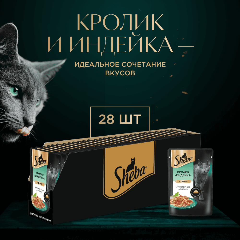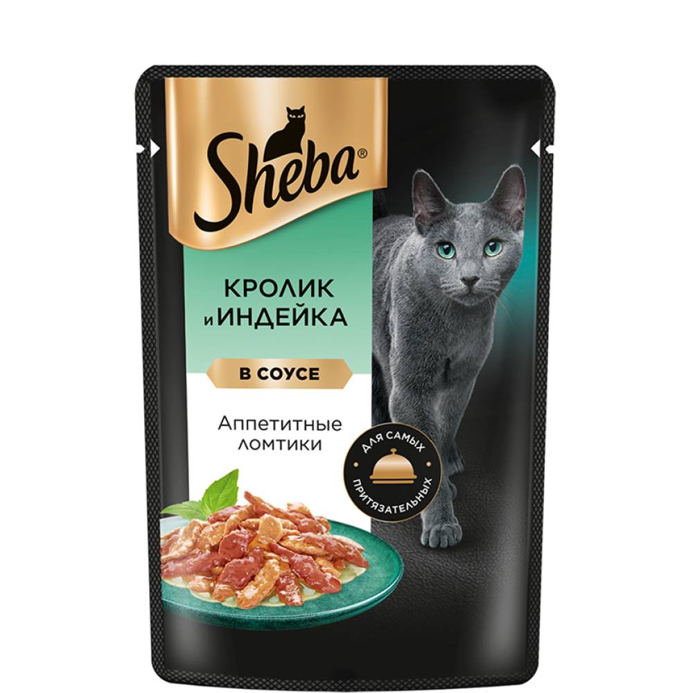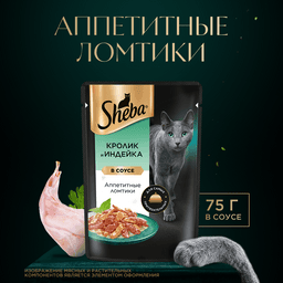 Sheba Влажный корм (пауч) для кошек Аппетитные ломтики, с кроликом и индейкой в соусе, 75 гр.