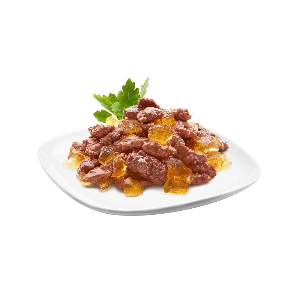 Сочные ломтики с курицей в ароматном желе – блюдо из высококачественных ингредиентов, которое придётся по вкусу самым притязательным кошкам.