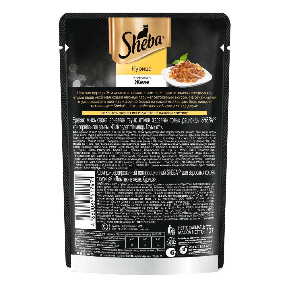 Sheba Влажный корм (пауч) для кошек, с ломтиками курицы в желе, 75 гр.