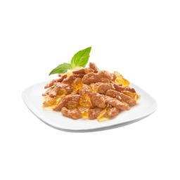 Сочные ломтики с курицей в ароматном желе – блюдо из высококачественных ингредиентов, которое придётся по вкусу самым притязательным кошкам.