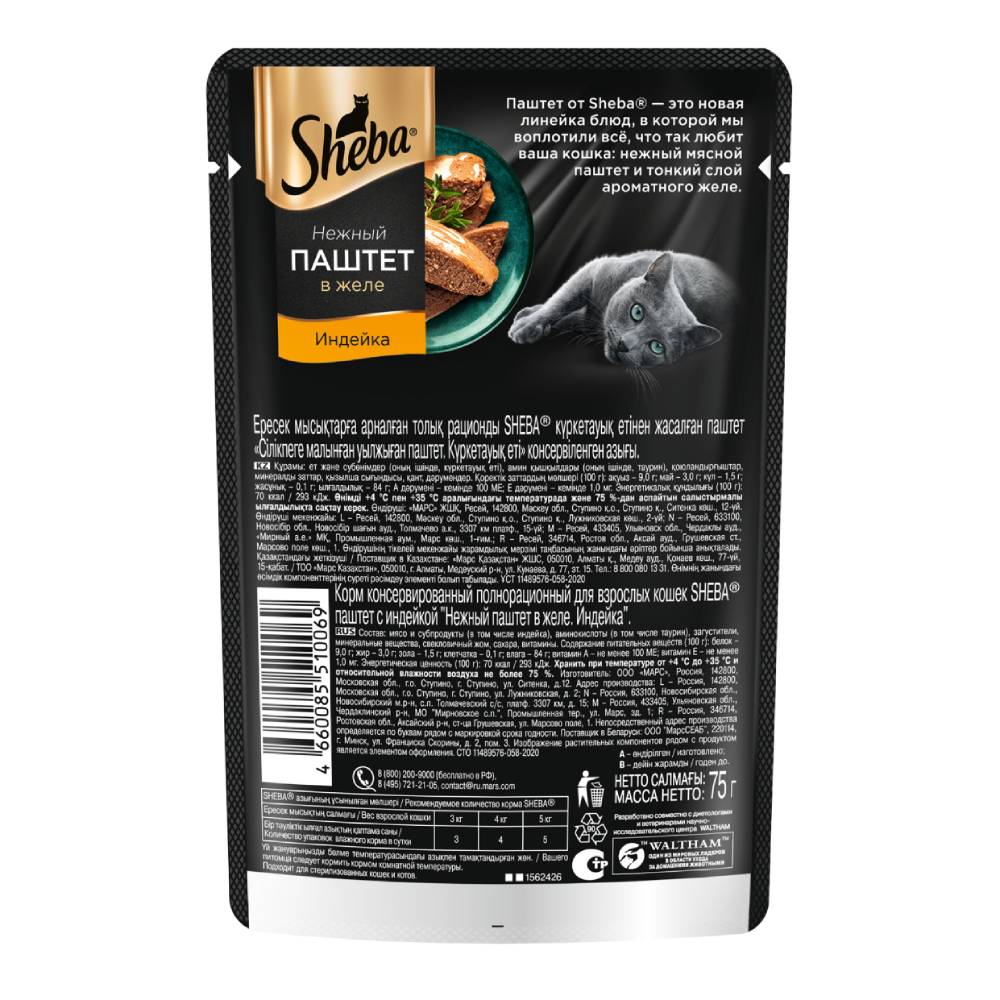 Sheba Влажный корм (пауч) для кошек, с паштетом из индейки в желе, 75 гр.
