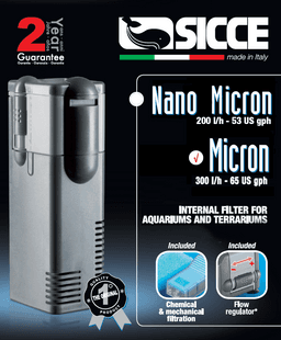 - Фильтр внутренний SICCE Micron Power Filter предназначен для аквариумов емкостью до 75 литров.
