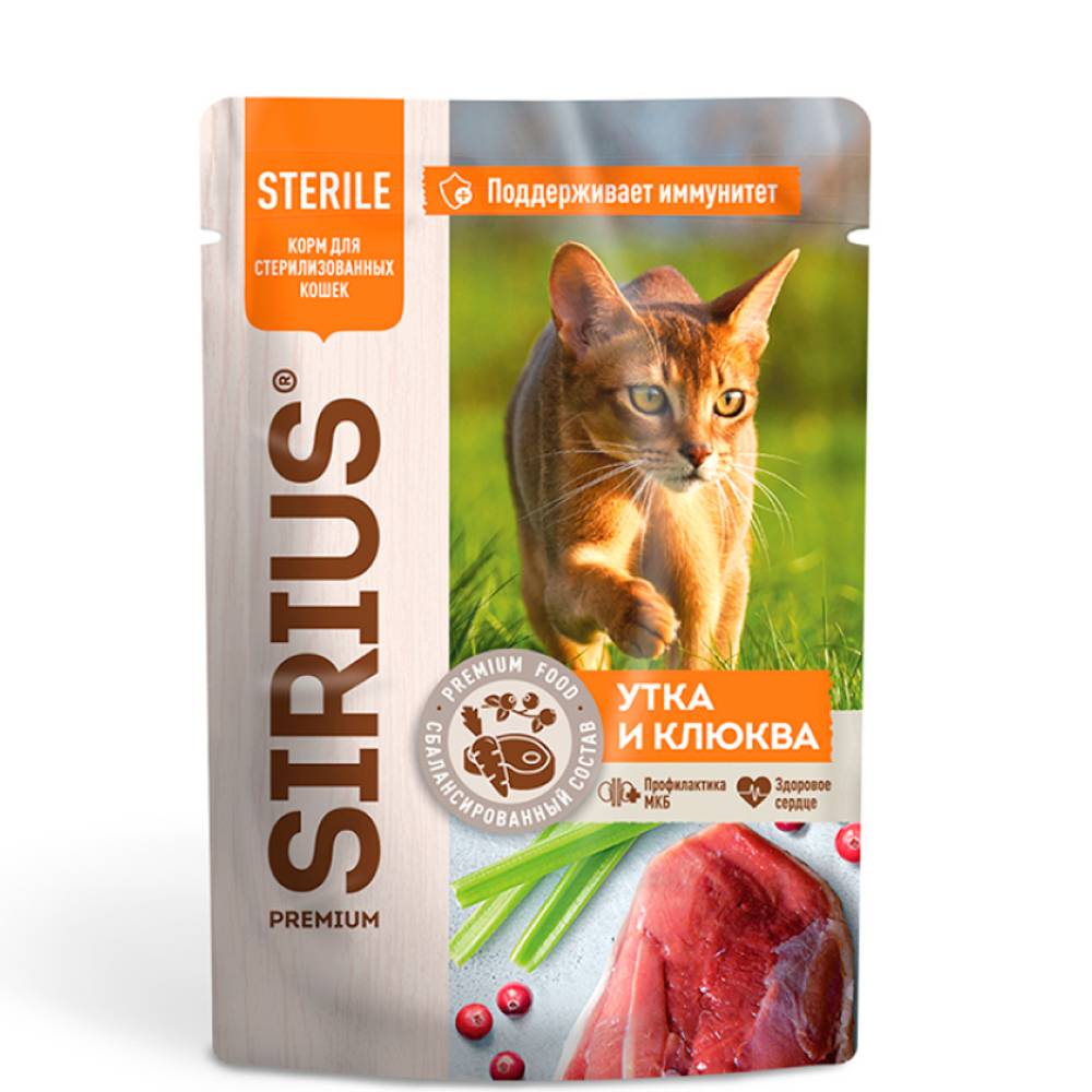 SIRIUS — влажный корм премиум-класса для полноценного ежедневного рациона стерилизованных кошек.
