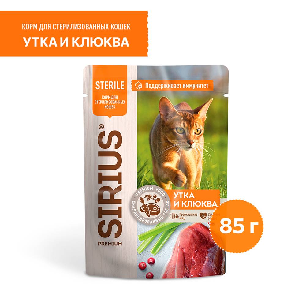 SIRIUS — влажный корм премиум-класса для полноценного ежедневного рациона стерилизованных кошек.