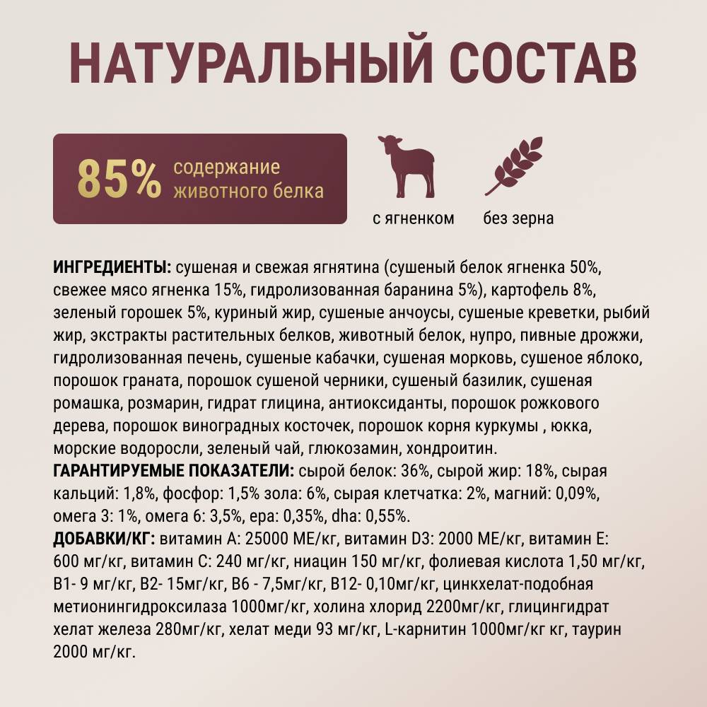 - Не содержит зерновые культуры и их производные, что делает его более физиологичным и усваиваемым;