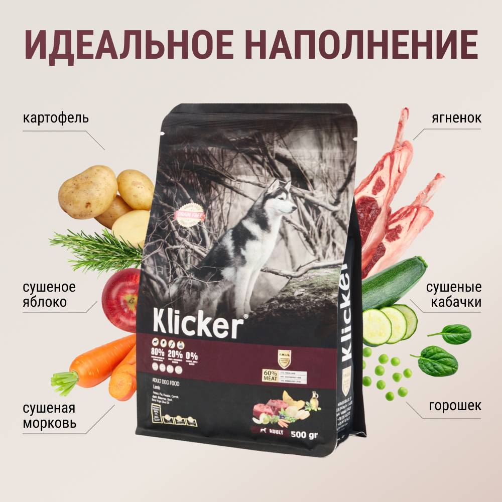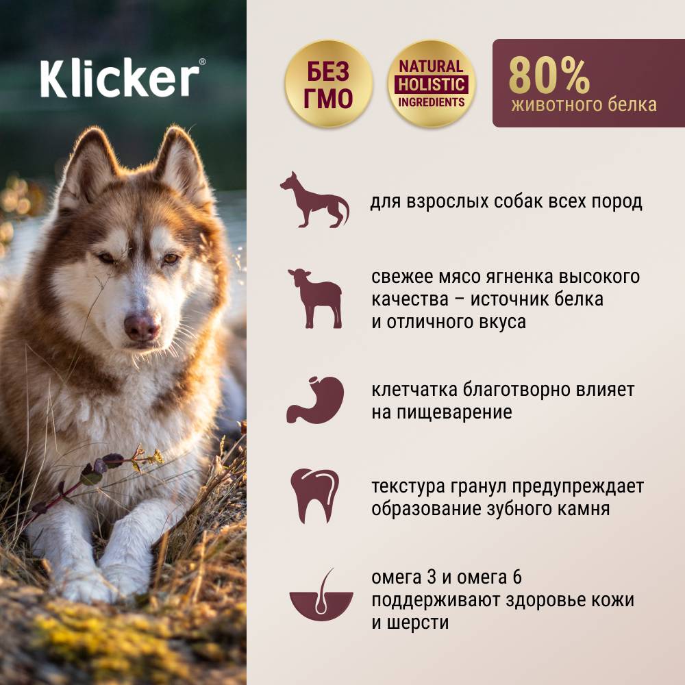 Корм Klicker с ягненком для взрослых собак всех пород – это полнорационный сухой рацион класса холистик, который ваш пес будет есть с удовольствием.
