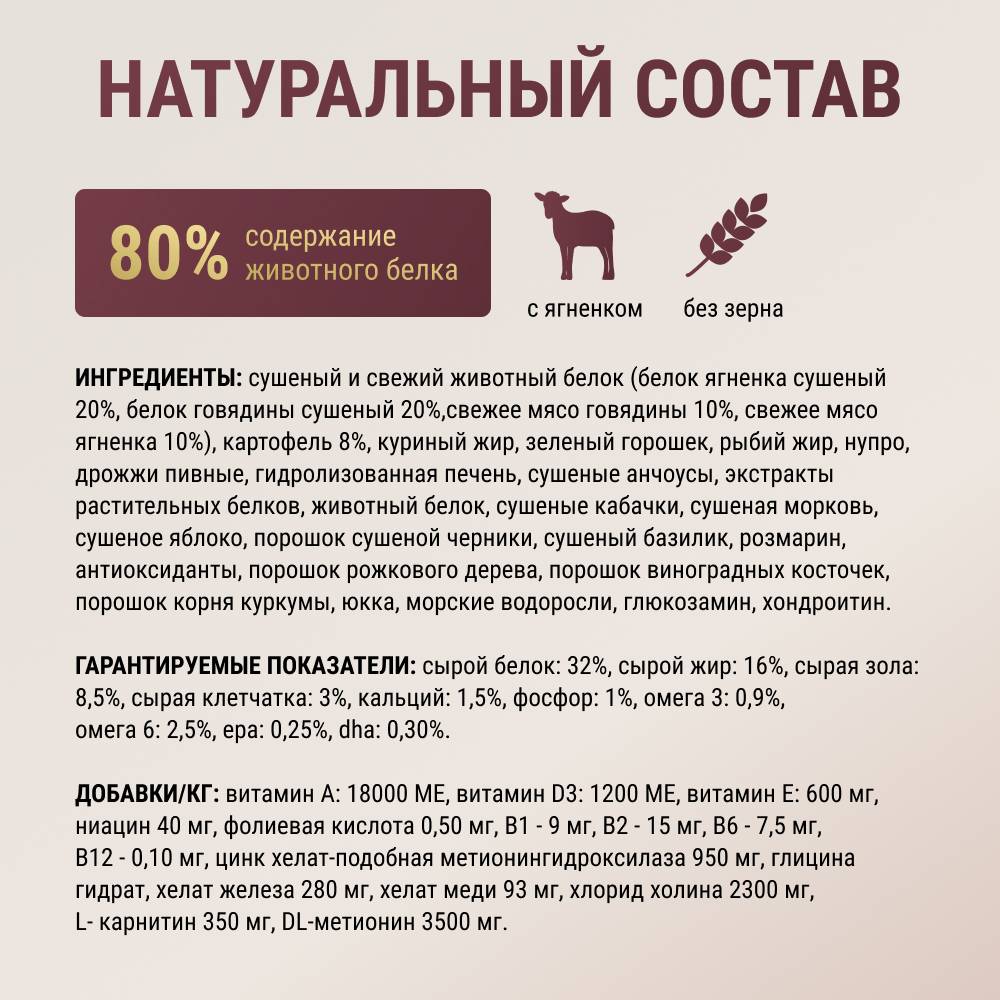 - отсутствуют злаки – рацион подходит питомцам, склонным к аллергии или имеющим чувствительное пищеварение;