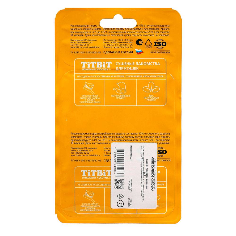 Лакомство для кошек ТиТБиТ филе куриное соломка Б2-C является прекрасным источником белка, витаминов и аминокислот, которые помогают держать кошку в активной физической форме и поддерживать общее здоровье животного.