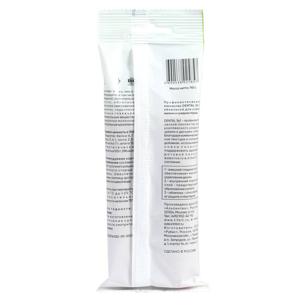 DENTAL 3в1 - профилактическое лакомство для комплексного ухода за зубами и деснами собак. Благодаря комбинированной текстуре и полезным добавкам использование снека позволит поддерживать здоровье ротовой полости животного в отличном состоянии: