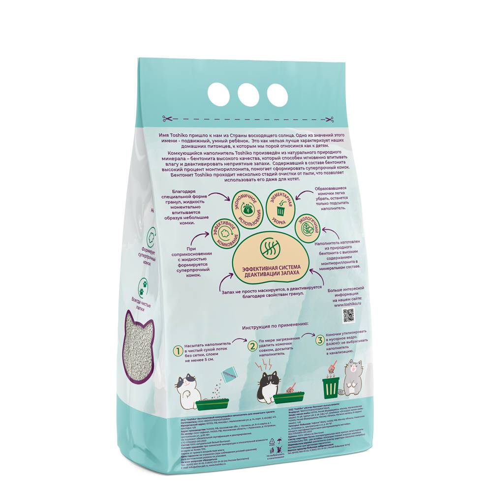 Наполнитель Toshiko произведён из натурального природного минерала - бентонита высокого качества, который способен мгновенно впитывать влагу и деактивировать неприятные запахи. Проходит несколько стадий очистки от пыли, что позволяет использовать его даже для котят.