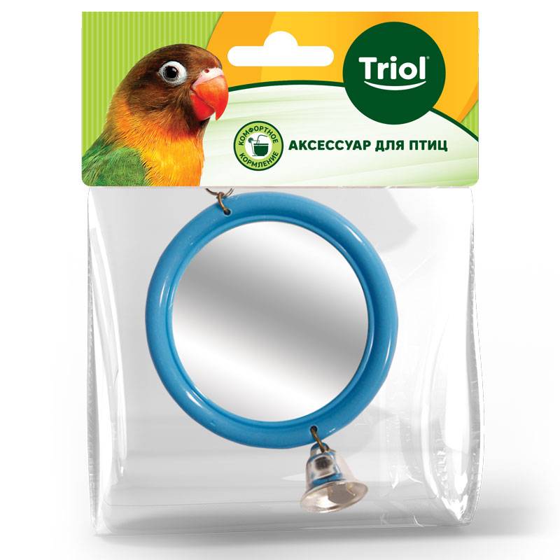 Игрушка для птиц – зеркало с колокольчиком.