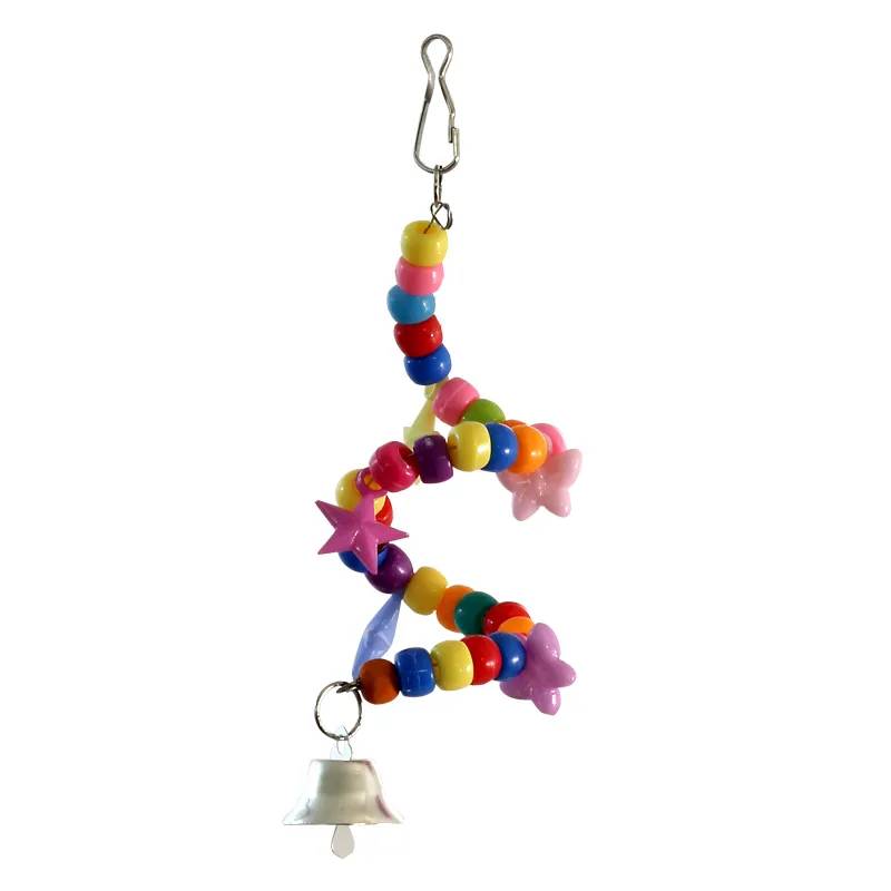 - Игрушка для птиц в виде змейки из бусинок с колокольчиком.