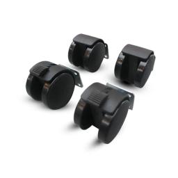2 колеса с тормозом и 2 - без тормоза.