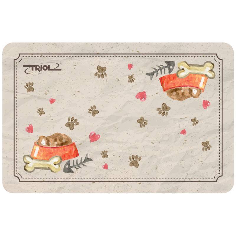 Триол Коврик под миску «Косточки», 430x280мм изготовлен из качественного полипропилена, препятствует скольжению миски с едой или водой по полу, защищает поверхность пола от загрязнения. Яркий коврик поможет приучить питомца к месту кормления. Коврик легко очищается при помощи воды, губки и любого моющего средства.