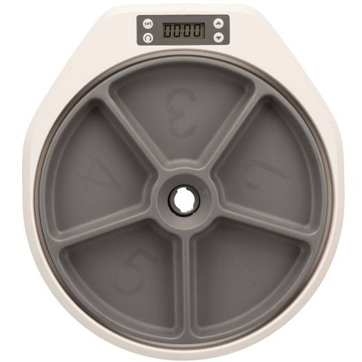 - Автоматическая кормушка для собак и кошек на 5 кормлений по 240 мл.