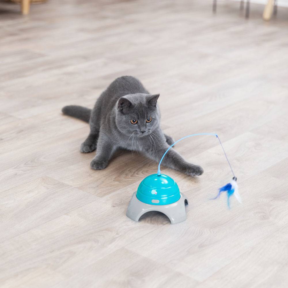 Трикси Игрушка для кошки с удочкой отличный способ увлечь вашего питомца увлекательной игрой. Кошки - хищники, и инстинкт охотника выражается в игре. Если вашей любимице не хватает движения и активных игр, то эта игрушка то, что вам нужно. Работающая на батарейках игрушка надолго привлечет кошку, при этом вашего внимания требоваться не будет, Вам останется только наблюдать за забавной игрой питомца.